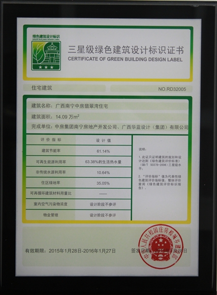 • 翡翠灣榮獲三星級綠色建筑設計標識證書