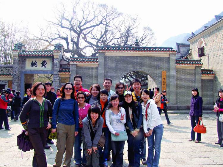 第三日清晨,整裝待發(fā)八點(diǎn)前往黃姚古鎮(zhèn)。賀州是粵東的一座新興城市,而黃姚,卻有著近千年的厚重。從古鎮(zhèn)入口前左邊的一條岔路走進(jìn)去,首先觸目的便是一條清澈的小溪、一棵參天的古榕樹(shù),我們開(kāi)始細(xì)細(xì)觀賞這個(gè)小鎮(zhèn)。古榕的軀干伸向小溪,又從空中垂下縷縷氣根,與水中的倒影連為一體。溪邊水井里清可見(jiàn)底,偶有小魚(yú)游動(dòng)。據(jù)說(shuō)黃姚是按九宮八卦陣式布局,鎮(zhèn)上的石板街有8條,共99999塊青石板,最早鋪砌于清順治年間。年代久遠(yuǎn),不知有多少人走過(guò),青石板已被磨得像鏡子般光滑,隱約泛著人影。橋下的姚江,如今看水依舊清碧,可是繁華不再,顯赫的牌匾也只能靜靜地訴說(shuō)著昔日的輝煌。石板路的小村落很安靜,人們過(guò)著日常的生活,村婦們?cè)诰^溪邊,淘菜洗衣,交流信息,菜渣、閑話(huà)都隨溪水流去,并不對(duì)外來(lái)的游客有格外的好奇。孩子們快樂(lè)地嬉戲著,在那些蜿蜒的巷子里不時(shí)冒出他們快樂(lè)的喧嘩。宗祠府第這樣的舊時(shí)輝煌不經(jīng)意地散布于鎮(zhèn)上的民居之中,亭閣前的聯(lián)匾,記錄著文人騷客對(duì)黃姚的鐘愛(ài),只是年代遠(yuǎn)去,如今物是人非。陽(yáng)光下的青石板路上有時(shí)候也會(huì)躺著狗或者貓,你從它們身上跨過(guò)去的時(shí)候,它們會(huì)懶懶地翻翻眼皮,然后繼續(xù)睡在陽(yáng)光里。雞們顯得勤快些,會(huì)邁著方步走在你前面東看看西瞅瞅,如果你不急,它會(huì)一直走在你前面,時(shí)間對(duì)它們沒(méi)有任何意義。還有那些老房子,任何一座都可能藏著一個(gè)故事。結(jié)了蛛網(wǎng)的窗欞恐怕已有了幾百年的歷史,但是沒(méi)有人把這當(dāng)成了不得的事情,一切如常,平靜隨意。