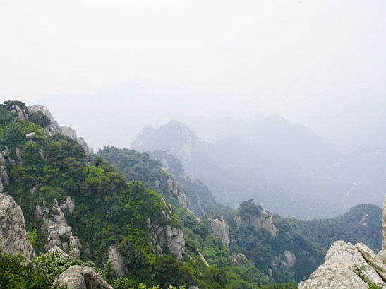 我們的行程很快,在下纜車后迅速到達南天門開始向玉皇頂進發(fā),然后終于來到了向往已久的泰山摩崖石刻處。作為泰山的標記之一,站在《紀泰山銘》的刻石下面,仰望這部唐玄宗的"封"山之作,頓時覺得自己十分渺小,泰山獨有的莊嚴神圣和巍峨磅礴撲面而來,讓我完全拜服于泰山的獨特魅力之中。隨后我們登上了泰山之巔--玉皇頂。在玉皇頂回身俯視天地,終于在課本之外親身體會感受到杜甫"會當凌絕頂,一覽眾山小"這句千古絕唱的韻妙之處,也真切的領(lǐng)會到"登泰山而小天下"的無與倫比的雄偉霸氣所在。