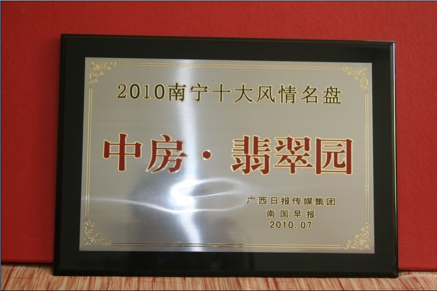 熱烈祝賀中房·翡翠園榮獲“2010南寧十大風(fēng)情名盤”稱號(hào)